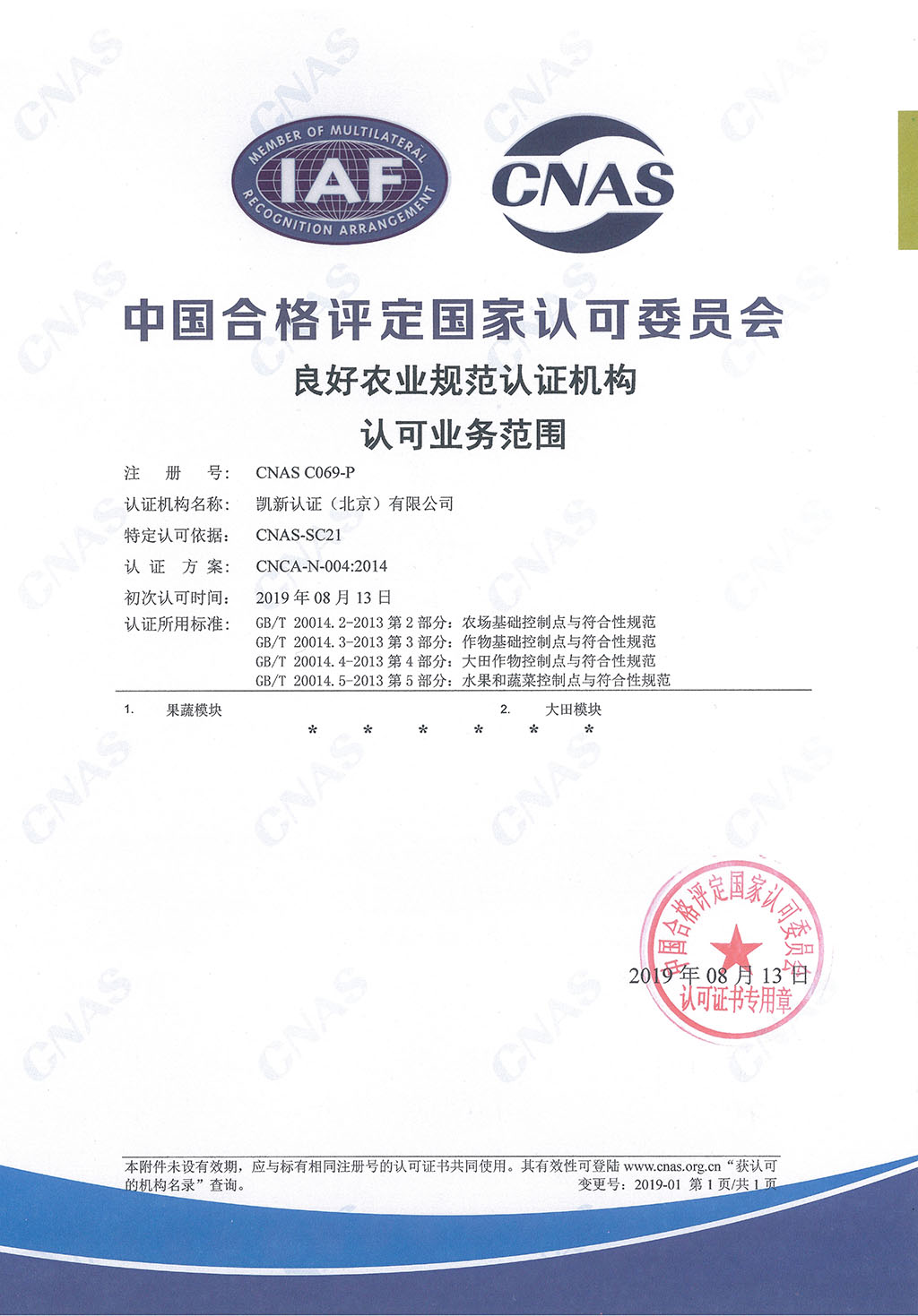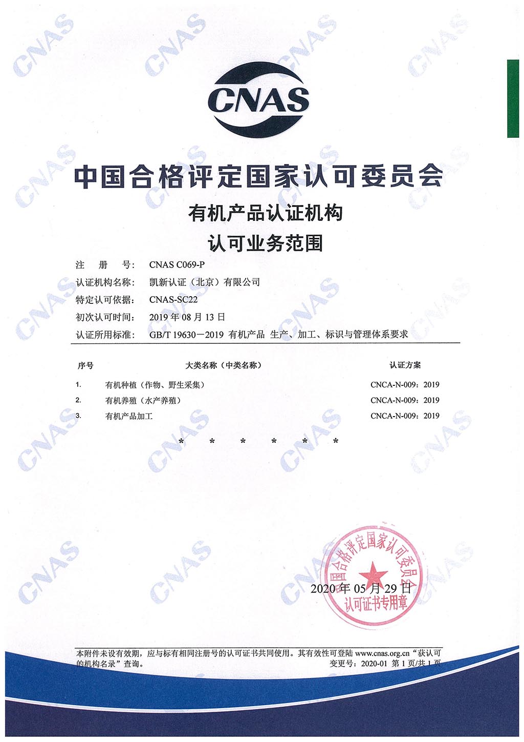 CNAS產品認證機構認可證書