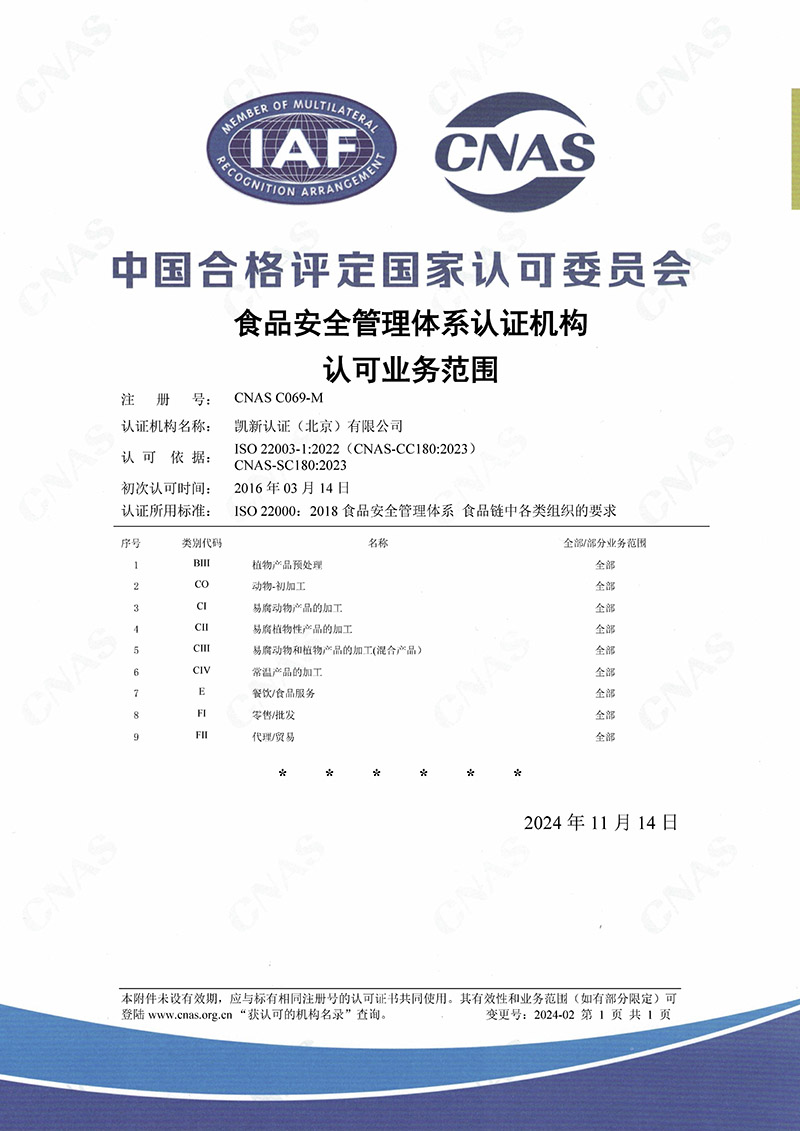 CNAS認可FSMS范圍