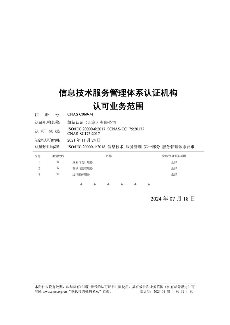 CNAS認可ITSMS范圍