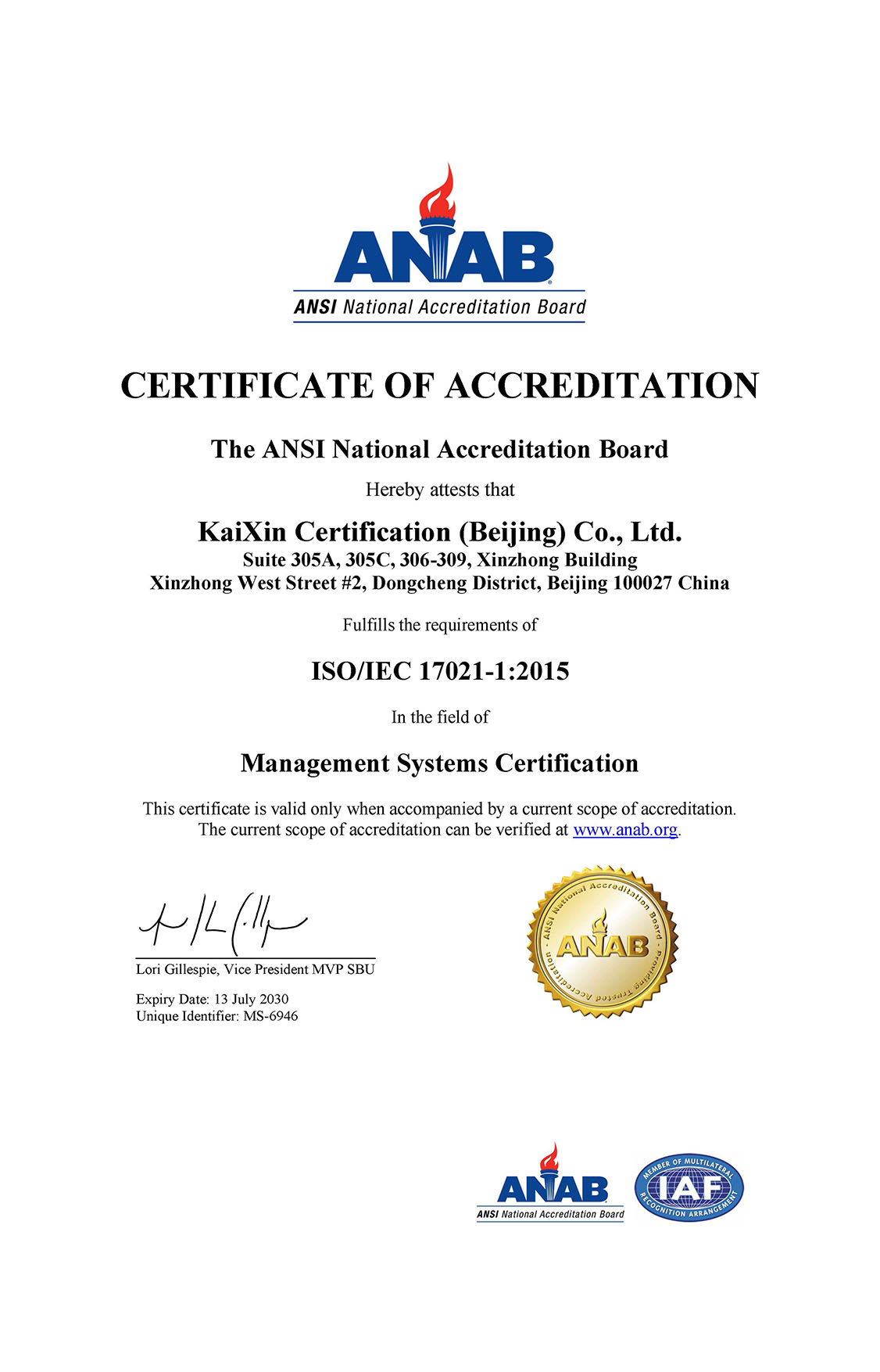 ANAB資質證書--第1頁